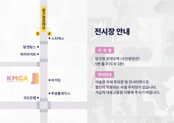 전시가 열리는 K현대미술관은 서울특별시 강남구에 위치해 있어요! 현대미술과 디즈니의 매력을 동시에 느낄 수 있는 멋진 공간이죠. 매일매일 성장하는 서울에서 세대를 아우르는 디즈니 세계를 경험해보세요! 🎨💖