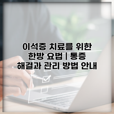 이석증 치료를 위한 한방 요법 | 통증 해결과 관리 방법 안내