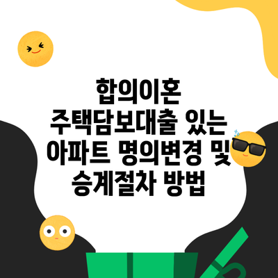 합의이혼 주택담보대출 있는 아파트 명의변경 및 승계절차 방법